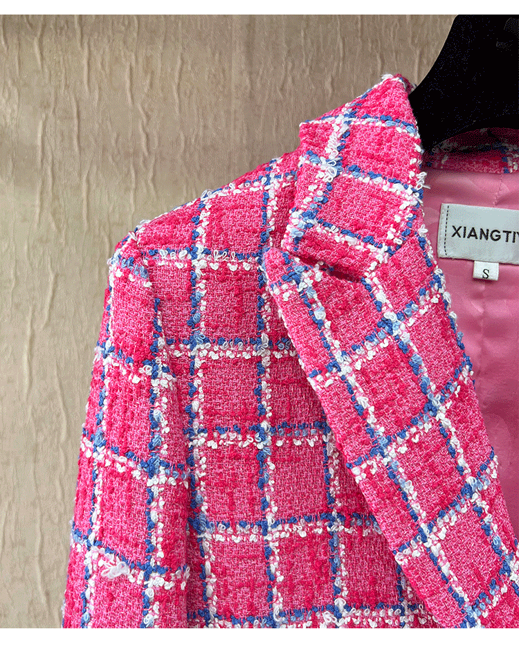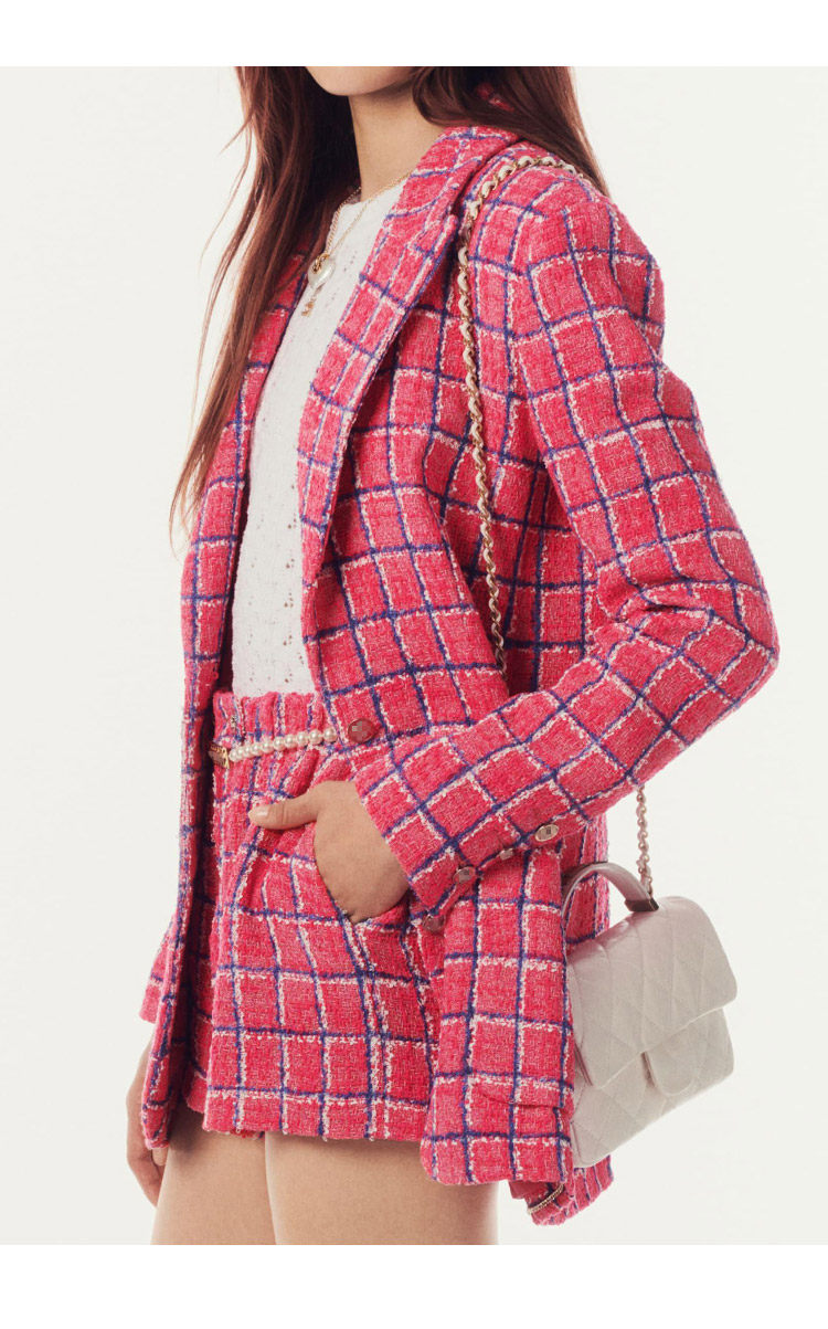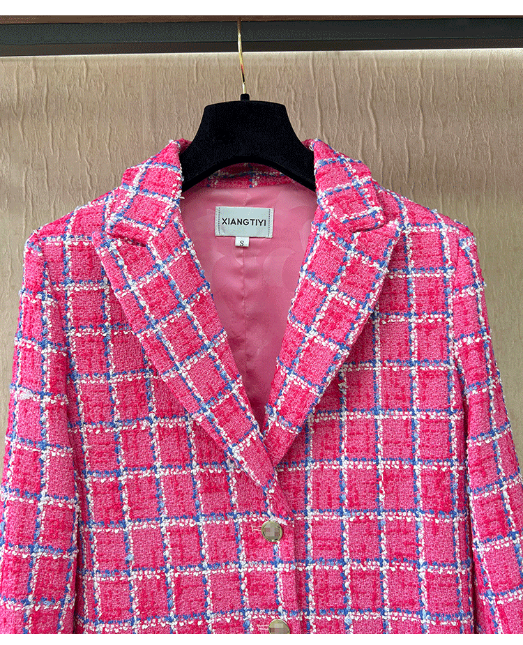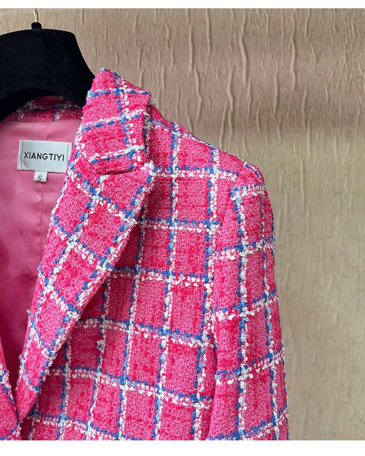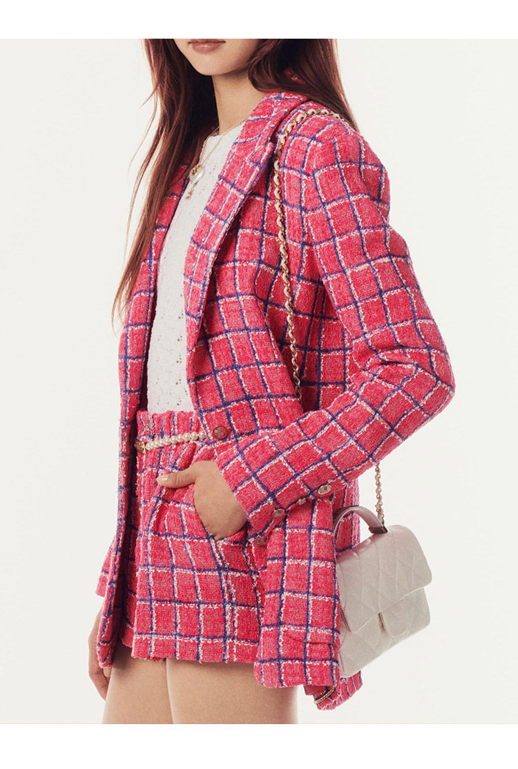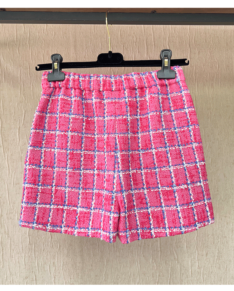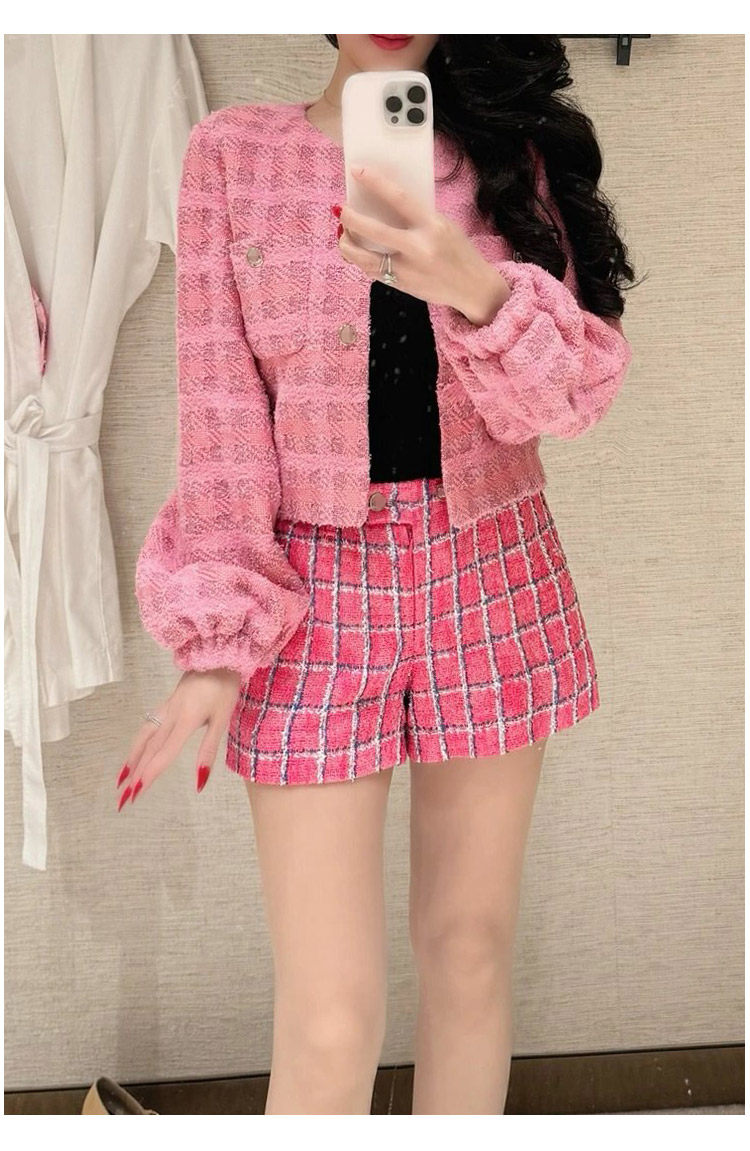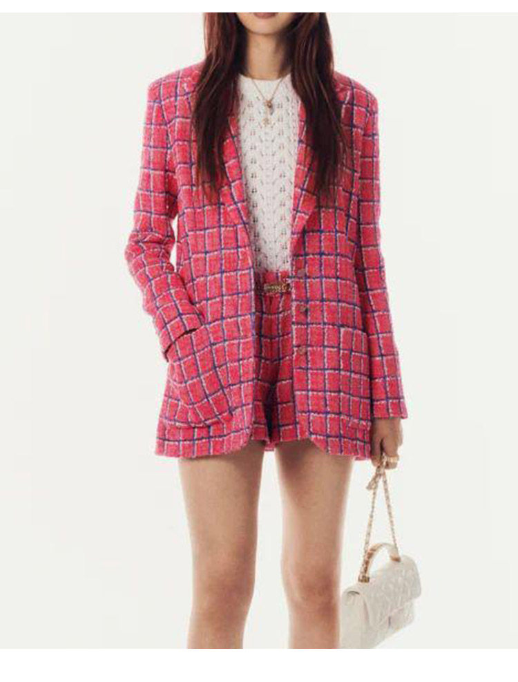 Spring new blazer shorts, pink plaid tweed top, pants, high-end celebrity temperament