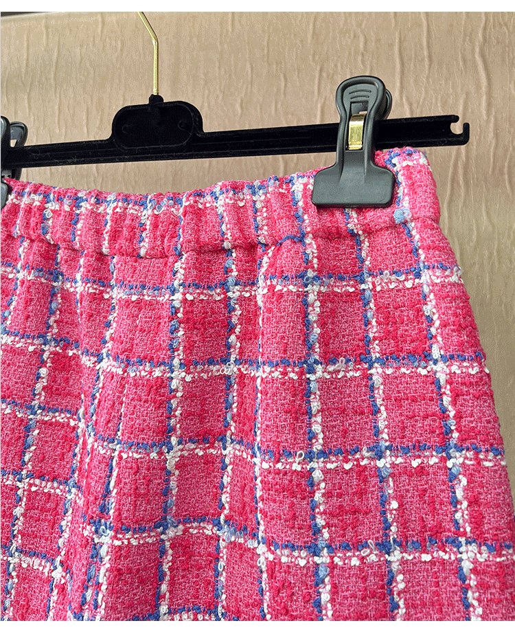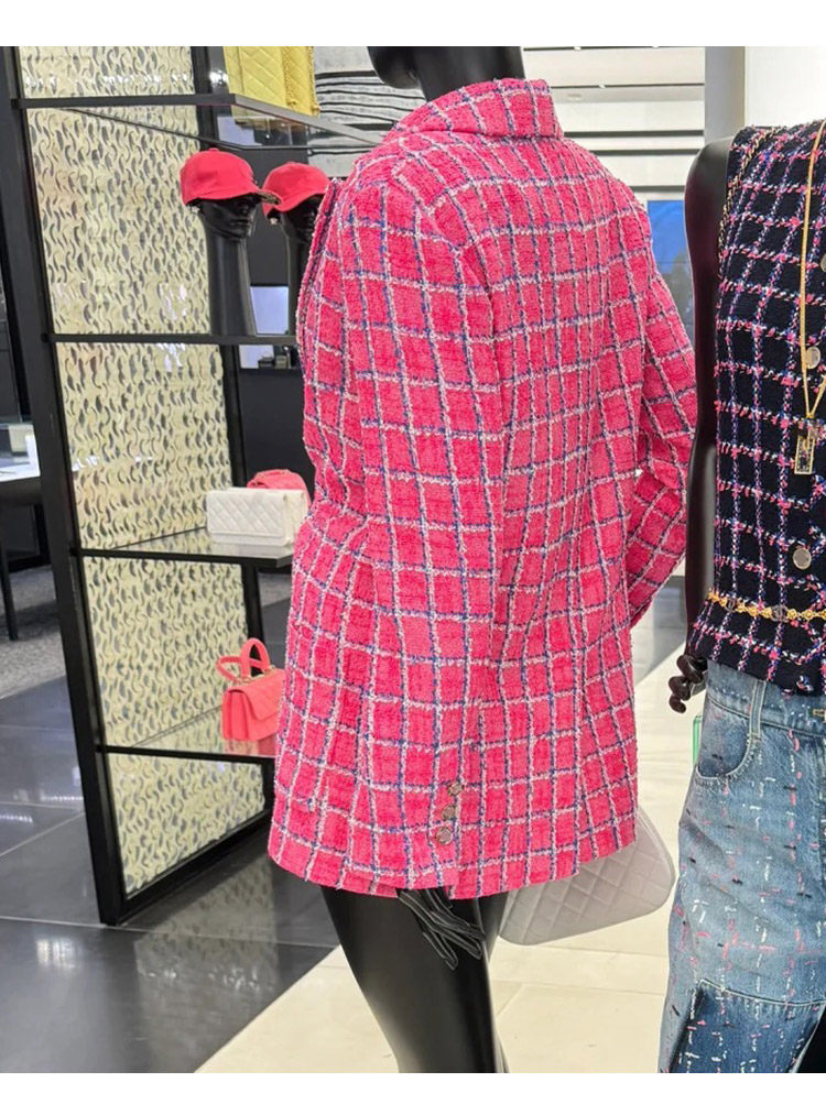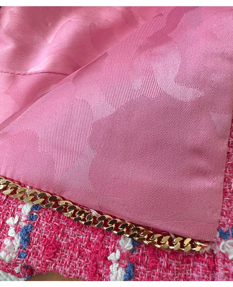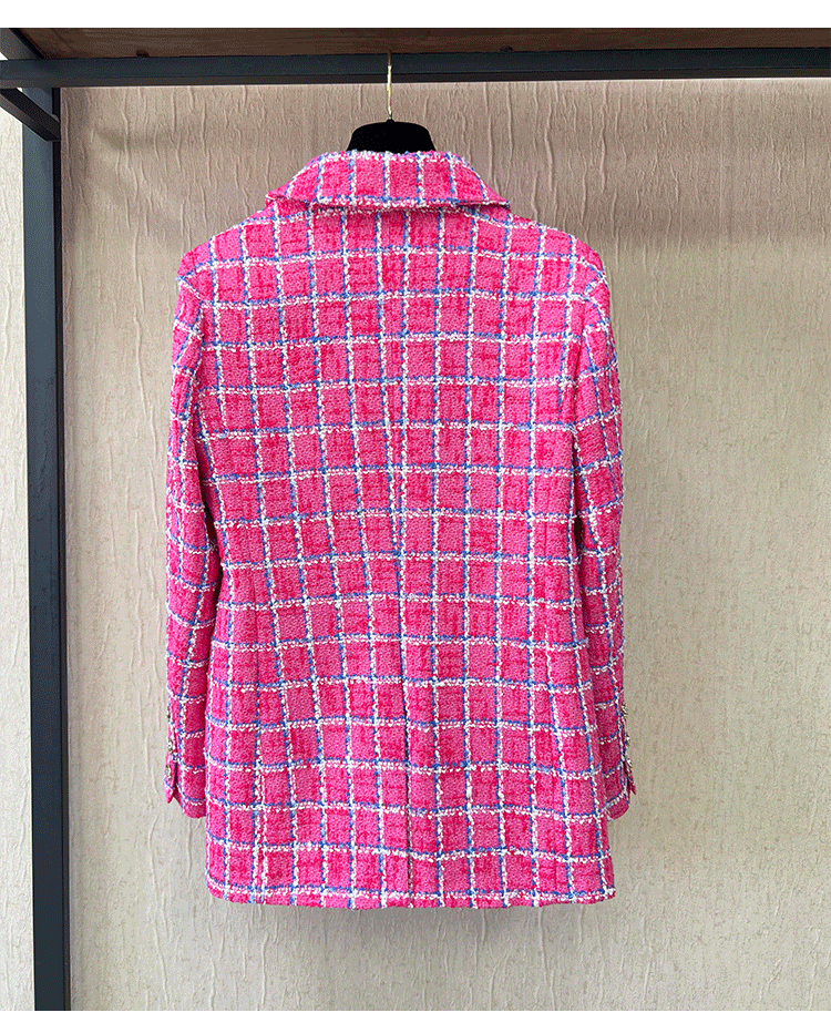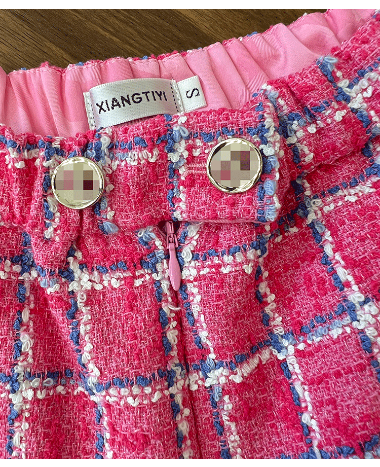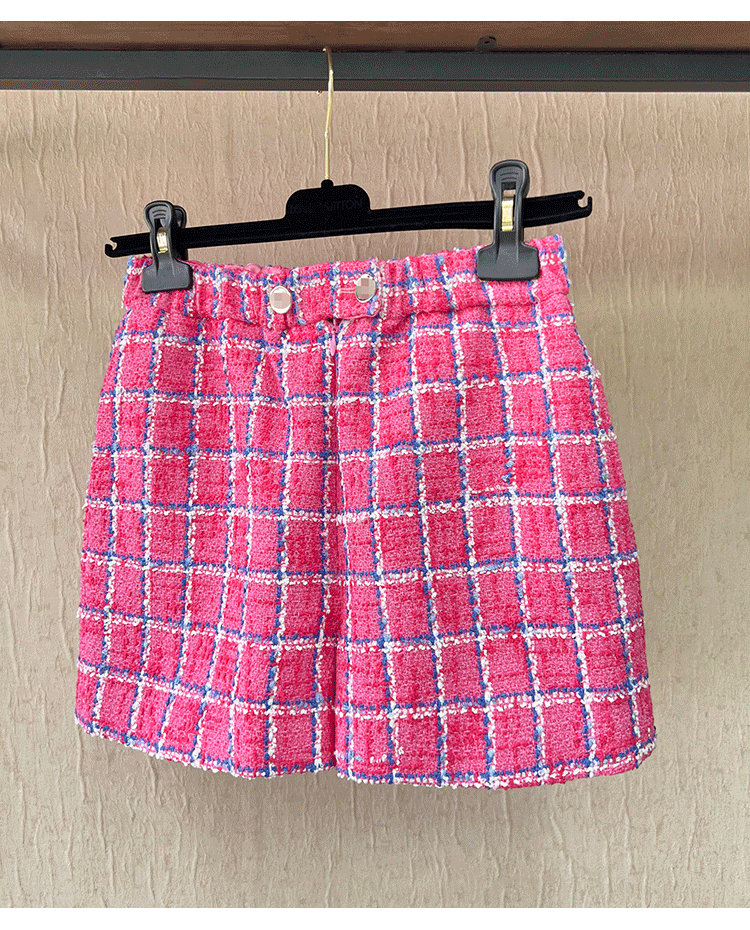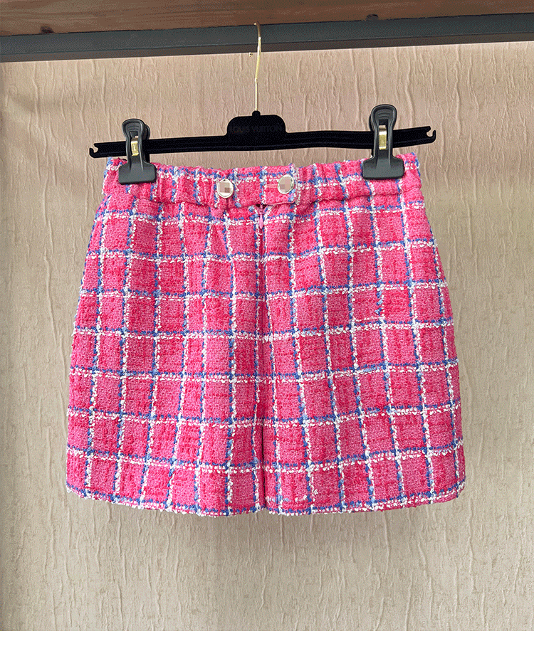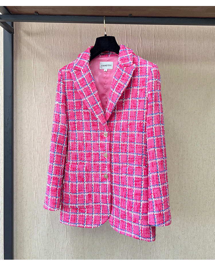 Spring new blazer shorts, pink plaid tweed top, pants, high-end celebrity temperament