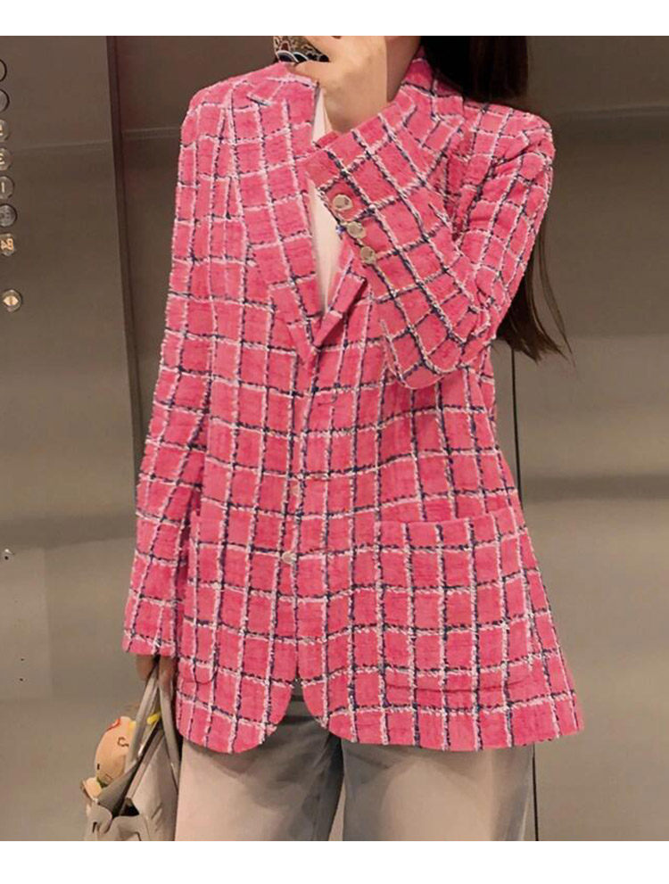 Color classification:Pink plaid blazer