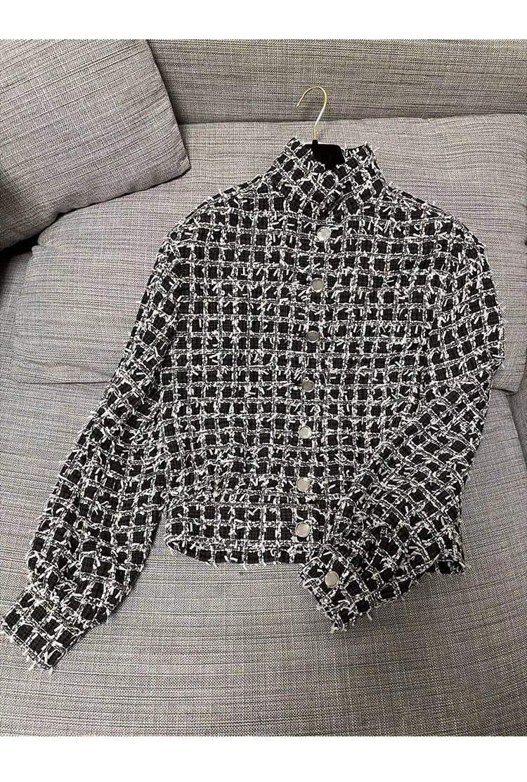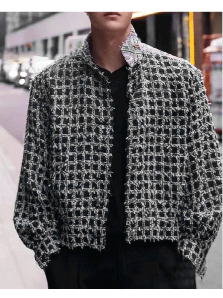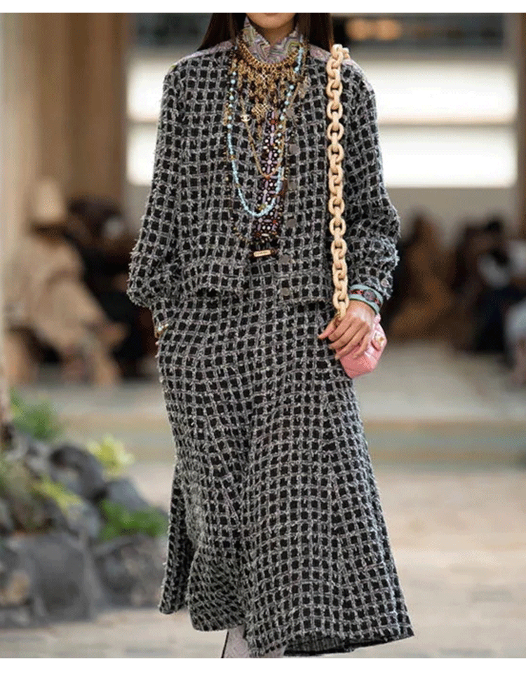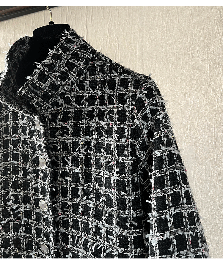 Wang Yibo's same autumn and winter suit, coat, skirt, high-end tweed plaid jacket, celebrity temperament